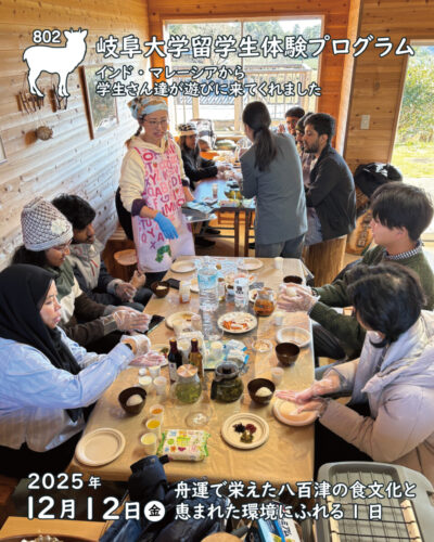 2024年度に続き、今年も岐阜大学 留学生体験プログラムとして、インド・マレーシアからの留学生のみなさんが八百津に遊びに来てくださいました。